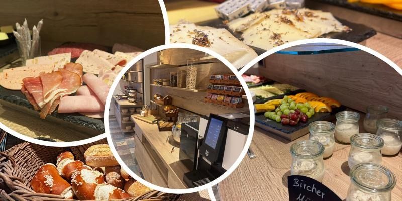 Von 8:00 bis 10:30 Uhr (in der Skisaison 7:30 bis 10:00 Uhr) erwarten euch frisch gebrühte Kaffeespezialitäten, knusprige Brötchen und ausgewählte Köstlichkeiten – viele davon aus der Region oder aus eigener Herstellung. Ob süße Marmeladen, cremige Aufstriche oder herzhafte Leckerbissen – hier ist für jeden Geschmack etwas dabei.