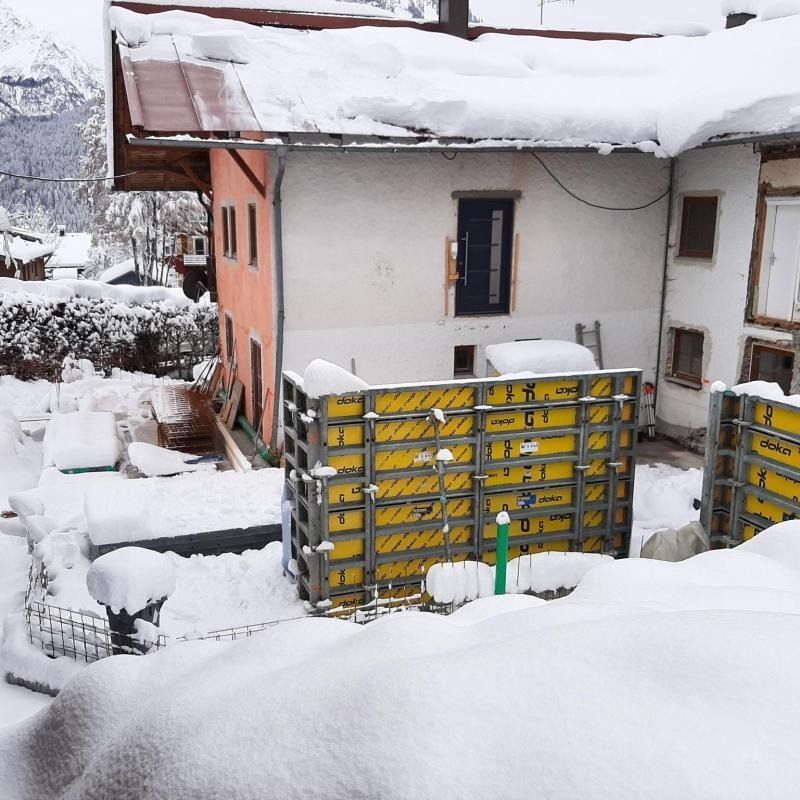 Willkommen im Allgäu – wo der Winter manchmal ungefragt auf der Baustelle mitarbeitet.