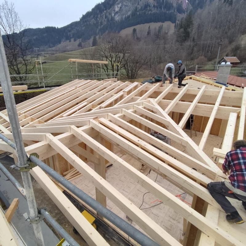 Ganze zwei Tage später war der Dachstuhl bereits aufgestellt! (9. Dez. 2022)